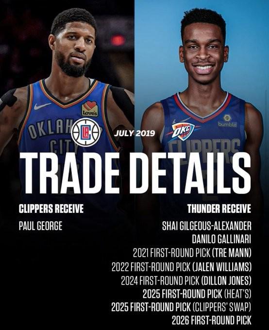 然而,在2019年雷霆与快船的乔治交易中,快船将自己的2026年无保护首轮送给了雷霆,因此无论快船取得什么顺位,这都将属于雷霆队。