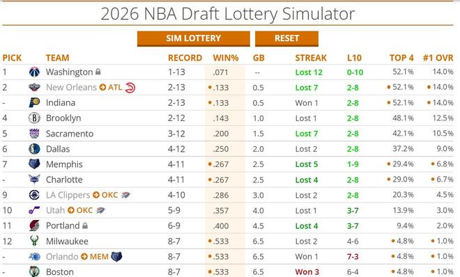 此役过后,快船队本赛季开赛15场的战绩为4胜11负,排在西部第11的位置,同时快船队目前的战绩与灰熊和黄蜂并列排在联盟倒数第七的位置,将有近30%的概率能拿到前四顺位。