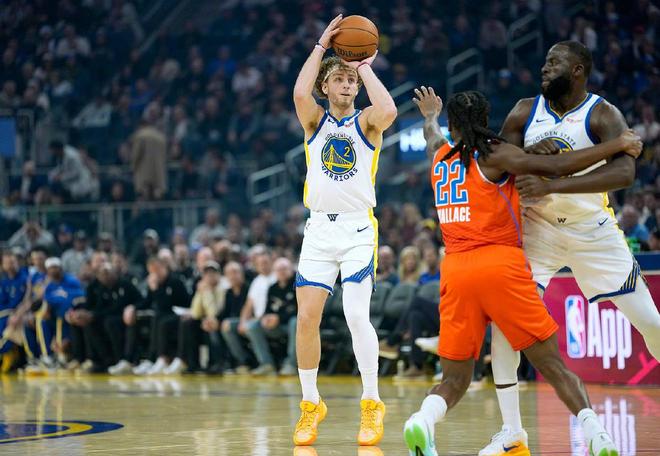 勇士队,波杰姆斯基11中6得到17分4板4助、斯潘塞14中8轰下了17分3板6助,末节连续得分。塞斯库里7中6高效的砍下了14分2板2助、格林11中5得到13分9板4助、加里佩顿二世13分5板5助、希尔德15中4,三分球9中2得到了13分1板4助2断,末节连续远投打铁。库明加10中3得到8分7板1助、巴特勒7中2得到6分3板1助、理查德5分4板2助、波斯特3分3板、穆迪5中1得到3分2板1助。