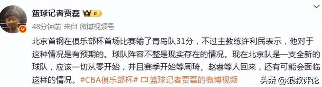计划内?徐利民:北京男篮输青岛31分,这种情况是有预期的