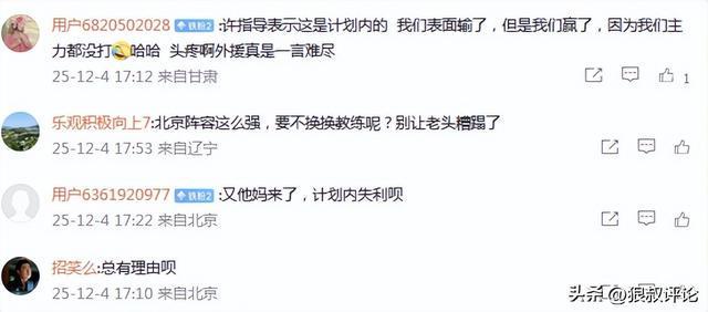 也有球迷调侃,输球的计划内又来了,我们表面输了,但是我们赢了,因为我们主力都没打,外援真是一言难尽。