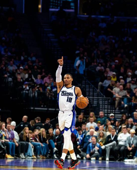 在拉文状态爆棚的情况下,威少在场上也打得非常聪明,只要拉文出现机会,就第一时间将球交到他的手上,四节战罢威少交出了12分和10次助攻的两双数据,在他的梳理下,国王此战一共有6名球员得分上双,为客场凯旋打下了坚实的基础。