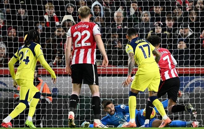 比赛刚开始不久,沙德在门前补射打进。但是,因为越位,进球被判无效。之后比赛比较沉闷,双方创造出的机会很少。阿奇-格雷的头球攻门被后卫挡出。而里沙利松的小角度射门踢偏了。亚尔莫柳克的远射踢飞了。半场结束比分依然是0-0!热刺上半场控球率51%,只有4次射门,1次射正,没能进球。布伦特福德上半场3次射门,同样没有打进。