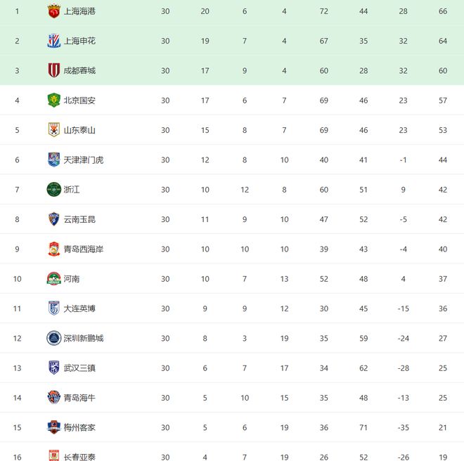 亚冠区这边,上海双雄和成都蓉城已经确保了前三的排名;只不过本赛季足协杯决赛双方北京国安和河南队都已无法从联赛途径获得亚冠资格,所以本赛季联赛仅有两支球队可以晋级亚冠。海港夺冠的同时锁定下赛季亚冠精英联赛的直通名额;申花第二名,还需要去参加亚冠精英的附加赛;成都蓉城则需要征战下赛季的亚冠二级联赛。